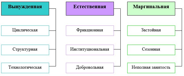 Выделяют три вида безработицы, каждый из которых имеет три формы