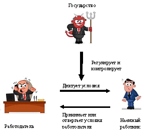 в) государство – является третьим субъектом, активно воздействует на происходящие процессы на рынке труда, как непосредственно регулируя эти процессы (оказывая услуги по трудоустройству, профообучению и профориентации, информируя субъектов рынка труда), так и применяя методы экономического принуждения через антимонопольное законодательство, сферу обращения, бюджетные, денежно-кредитные рычаги.